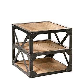 Almacenamiento de marco de Metal Industrial francés de estilo Vintage para sala de estar, mesa auxiliar de café cuadrada de madera recuperada, Estilo Vintage, para uso en sala de estar