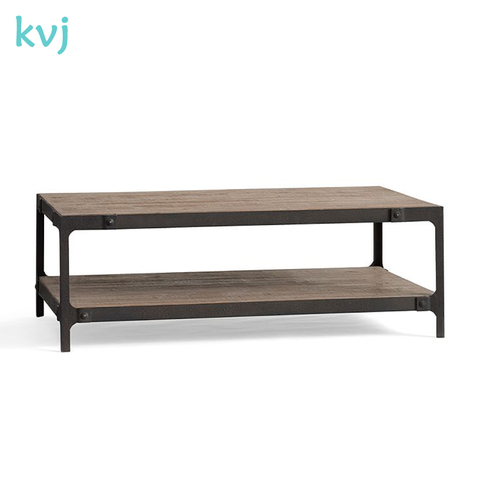 Mesa de centro de madera de fábrica con consola de hierro, muebles de sala de estar para uso doméstico
