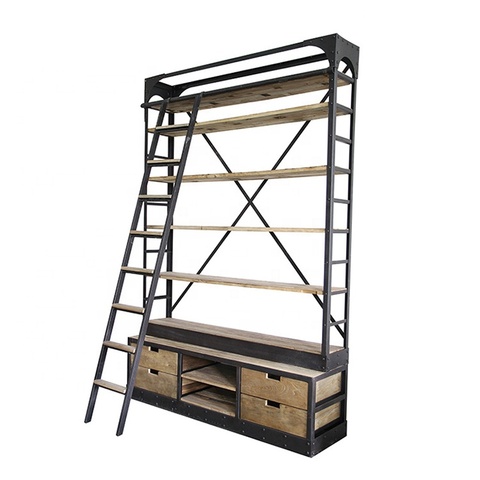 Estante de almacenamiento de estantería de Metal de madera de olmo natural antiguo de